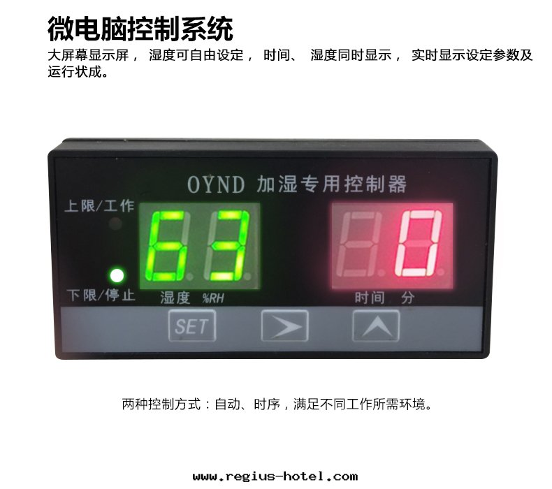 3、最(zuì)大(dà)相对(duì)湿(shī)度(dù)可(kě)达(dá)到(dào)90%以(yǐ)上(shàng),可(kě)調可(kě)控,可(kě)带(dài)温(wēn)度(dù)顯示。
