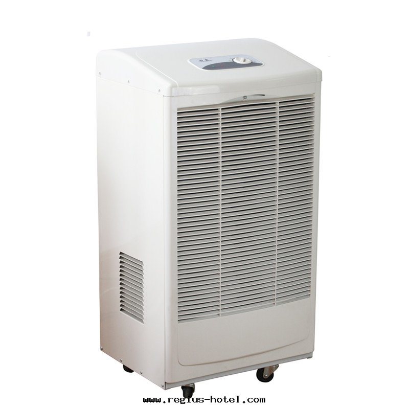工業除湿(shī)機(jī)通(tòng)过(guò)風(fēng)機(jī)抽入(rù)潮湿(shī)空(kōng)气,通(tòng)过(guò)冰冻的(de)蒸發(fà)器凝結成(chéng)水(shuǐ),彙集容器內(nèi)或經(jīng)水(shuǐ)管(guǎn)引流排走(zǒu),干(gàn)爽空(kōng)气由(yóu)出(chū)風(fēng)口(kǒu)排出(chū),湿(shī)度(dù)逐漸下(xià)降。
