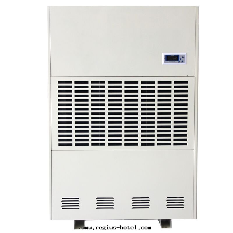 工業除湿(shī)機(jī)通(tòng)过(guò)風(fēng)機(jī)抽入(rù)潮湿(shī)空(kōng)气,通(tòng)过(guò)冰冻的(de)蒸發(fà)器凝結成(chéng)水(shuǐ),彙集容器內(nèi)或經(jīng)水(shuǐ)管(guǎn)引流排走(zǒu),干(gàn)爽空(kōng)气由(yóu)出(chū)風(fēng)口(kǒu)排出(chū),湿(shī)度(dù)逐漸下(xià)降。