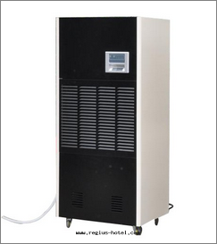 工業除湿(shī)機(jī)通(tòng)过(guò)風(fēng)機(jī)抽入(rù)潮湿(shī)空(kōng)气,通(tòng)过(guò)冰冻的(de)蒸發(fà)器凝結成(chéng)水(shuǐ),彙集容器內(nèi)或經(jīng)水(shuǐ)管(guǎn)引流排走(zǒu),干(gàn)爽空(kōng)气由(yóu)出(chū)風(fēng)口(kǒu)排出(chū),湿(shī)度(dù)逐漸下(xià)降。