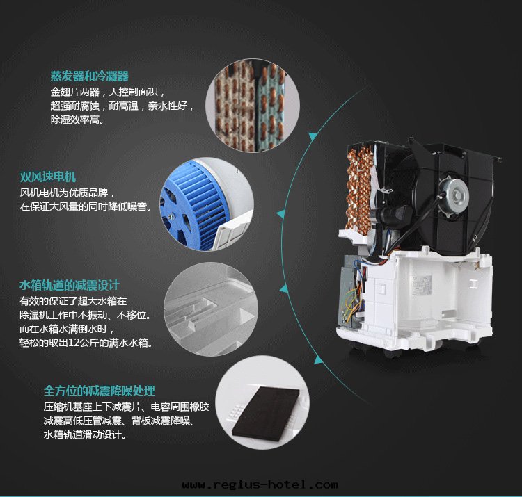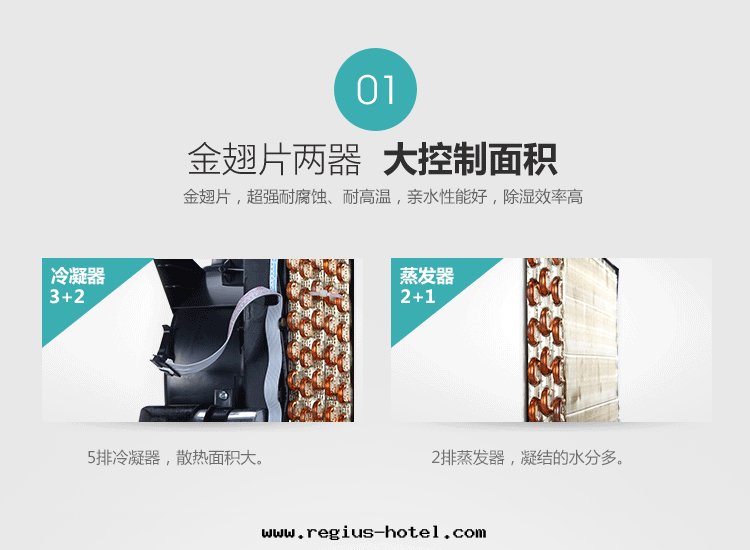8、金(jīn)翅(chì)片(piàn)蒸發(fà)器,超強(qiáng)耐防腐,耐高(gāo)温(wēn),親水(shuǐ)性(xìng)良好(hǎo),除湿(shī)效率高(gāo)。