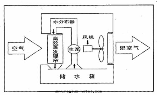 淨化(huà)湿(shī)膜加湿(shī)機(jī)啟動(dòng)後(hòu),随着風(fēng)機(jī)的(de)運轉(zhuǎn),水(shuǐ)泵把儲存箱(xiāng)的(de)水(shuǐ)送到(dào)水(shuǐ)部(bù)器,均勻的(de)分(fēn)布(bù)在高(gāo)效湿(shī)帘(lián)蒸發(fà)器的(de)表(biǎo)面(miàn),湿(shī)帘(lián)蒸發(fà)器的(de)特(tè)殊角(jiǎo)度(dù)使水(shuǐ)直(zhí)接流向(xiàng)空(kōng)气進(jìn)風(fēng)口(kǒu)的(de)一側,干(gàn)燥或炎热(rè)的(de)空(kōng)气通(tòng)过(guò)湿(shī)帘(lián)發(fà)生(shēng)器使水(shuǐ)份蒸發(fà),從而(ér)提(tí)高(gāo)空(kōng)气的(de)相对(duì)湿(shī)度(dù)及(jí)降低(dī)室(shì)內(nèi)的(de)温(wēn)度(dù),同(tóng)时(shí)使通(tòng)过(guò)湿(shī)帘(lián)蒸發(fà)器的(de)空(kōng)气得到(dào)水(shuǐ)循环(huán)的(de)过(guò)濾,送出(chū)的(de)風(fēng)變(biàn)得湿(shī)潤、清(qīng)凉(liáng)、清(qīng)新(xīn)。