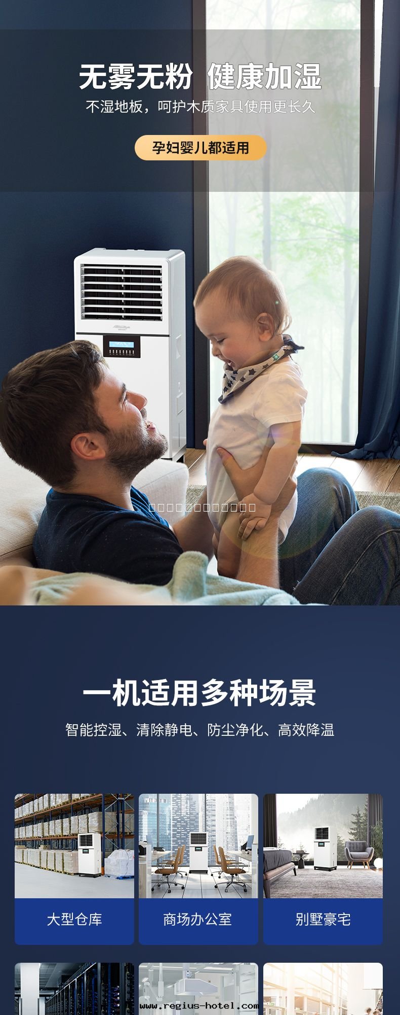 7、遙控器調节(jié)更(gèng)方(fāng)便,6米(mǐ)遠(yuǎn)距離遙控輕(qīng)松享受水(shuǐ)潤空(kōng)气;