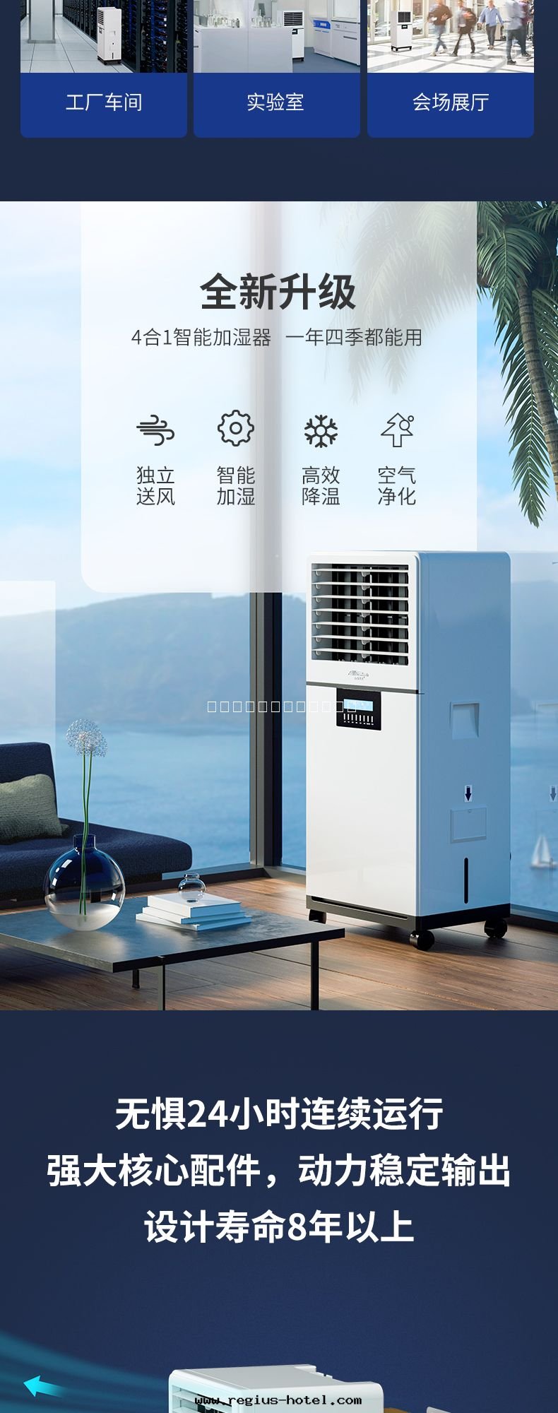 15、四(sì)合一智能(néng)加湿(shī)器,一年(nián)四(sì)季皆可(kě)用(yòng),獨立送風(fēng),智能(néng)加湿(shī),高(gāo)效降温(wēn),空(kōng)气淨化(huà)。